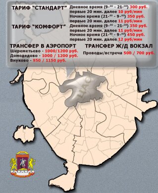 Стоимость услуг компании «Мираж» – дешевле такси не найтиСтоимость вызова такси для перевозки можно рассчитать, воспользовавшись онлайн-калькулятором. Обратите внимание на интерактивную карту, где четко указаны тарифы заказа автомобиля для каждого административного округа столицы. Тарифы такси комфорт: дневной — 350 рублей за первые 20 минут, далее — 13 рублей за минуту; ночной тариф — 400 рублей за 20 первых минут, далее — 15 рублей. Компания взвешенно подходит к ценообразованию, отдает предпочтение качеству и формированию доверия клиента. После заполнения онлайн-заявки, автомобиль будет подан к вашему офису, дому или к другому объекту в максимально короткий срок. Оплатить поездку можно наличными либо с помощью банковской карты. Заказ на вызов также принимают диспетчеры по телефону: (495) 632-02-20. ![]() |